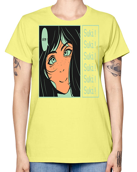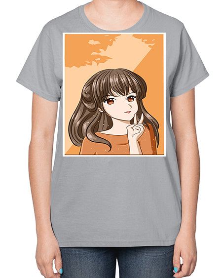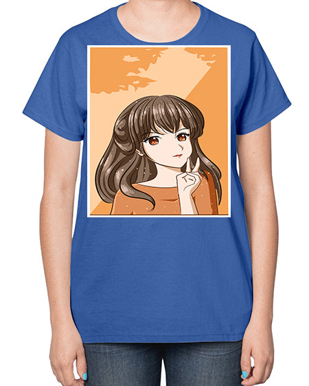 Beautiful and pretty girl long hair with orange background 100# - anime- Ladies T-Shirt