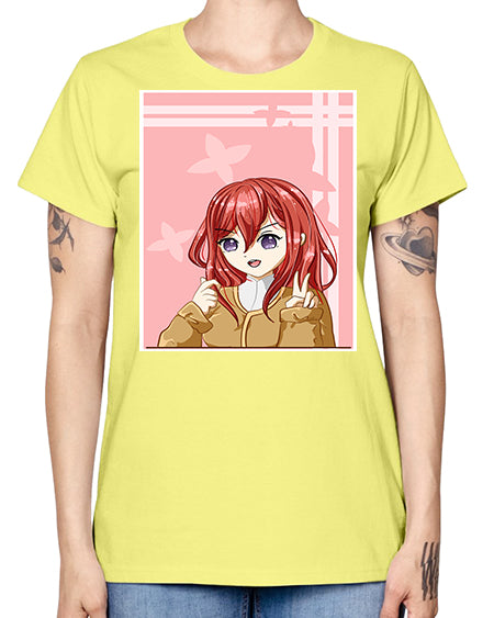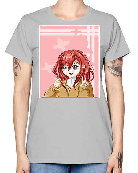 Beautiful and pretty little girl red long hair with 106# - anime- Ladies T-Shirt