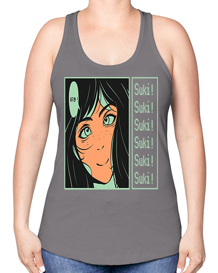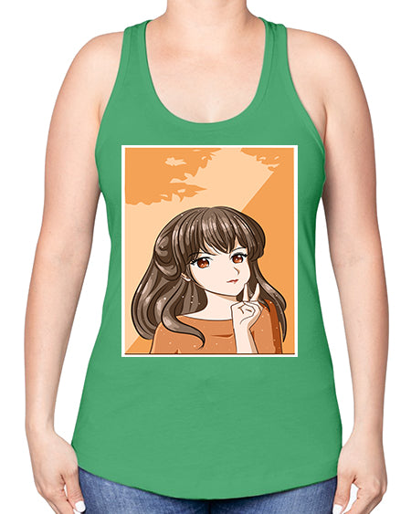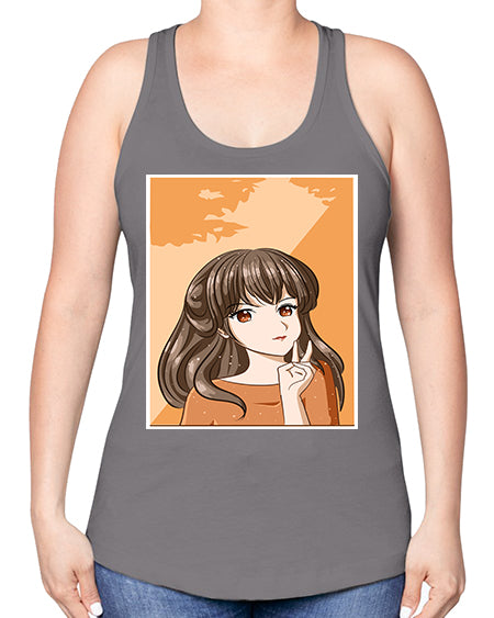 Beautiful and pretty girl long hair with orange background 100# - anime -Racerback Tank