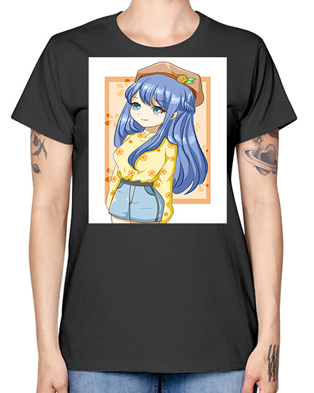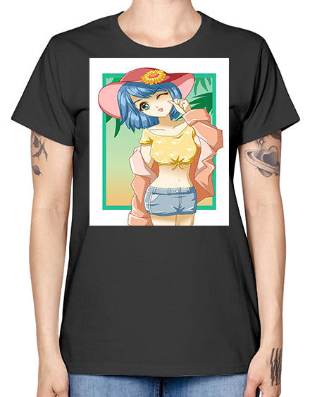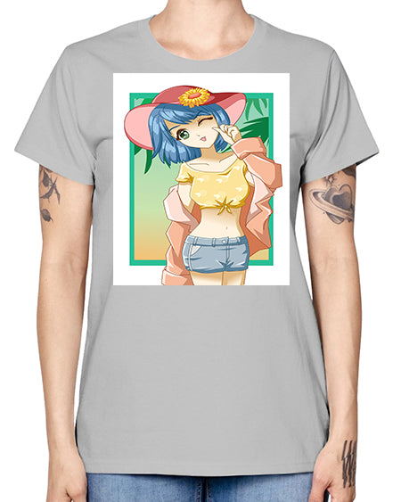 Beautiful and soft girl blue hair in summer 153# - anime- Ladies T-Shirt