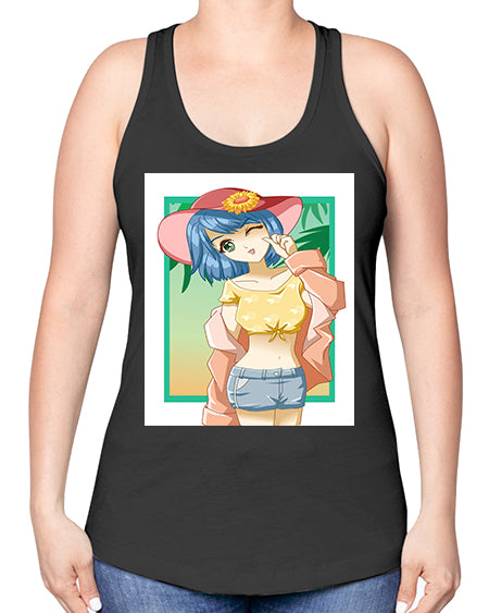 Beautiful and soft girl blue hair in summer 153# - anime -Racerback Tank