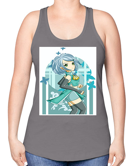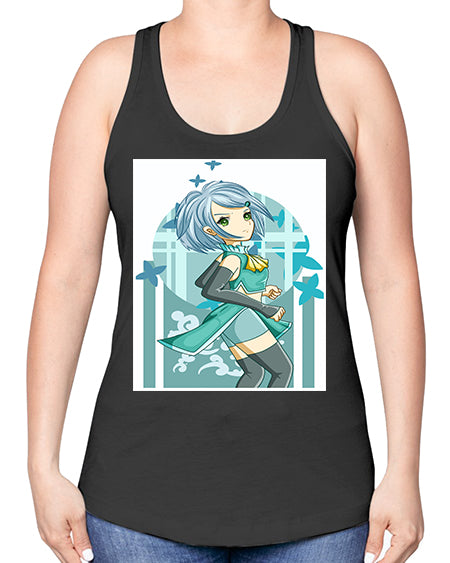 Beautiful girl blue hair with green clothes 161# - anime -Racerback Tank