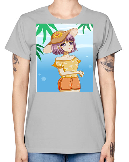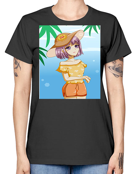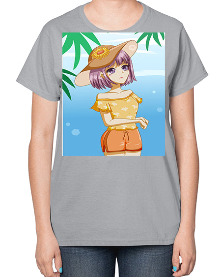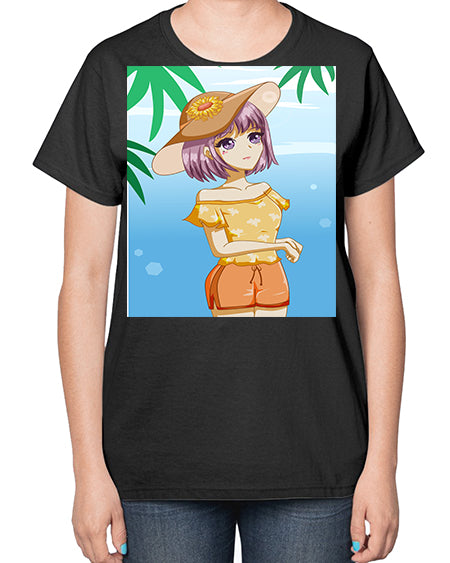 Beautiful girl in summer with sunflower 116# - anime- Ladies T-Shirt