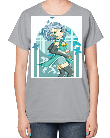 Beautiful girl blue hair with green clothes 161# - anime- Ladies T-Shirt