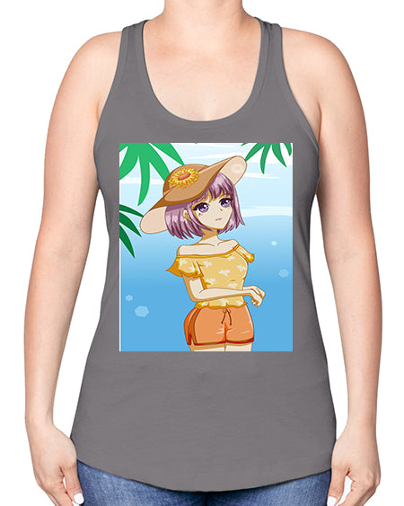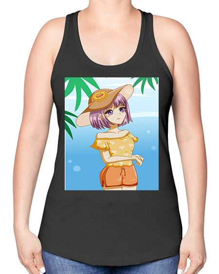 Beautiful girl in summer with sunflower 116# - anime -Racerback Tank