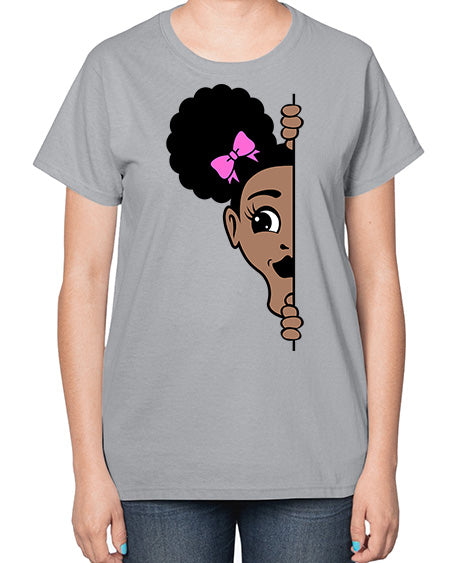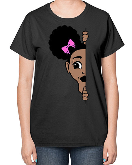 afro puffs girl peekaboo 83# - black girls or women- Ladies T-Shirt