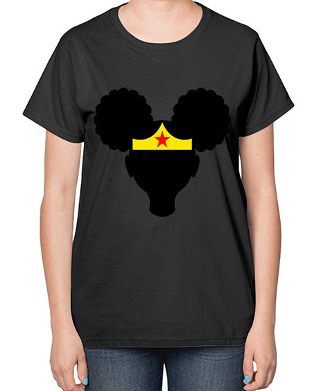 afro puffs girl wonder woman 78# - black girls or women- Ladies T-Shirt
