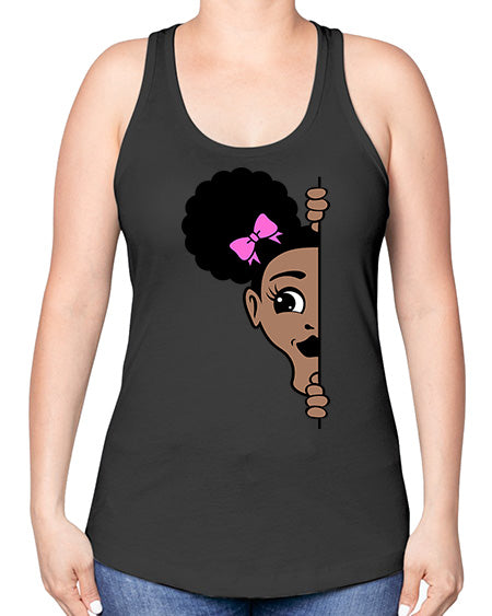 afro puffs girl peekaboo 83# - black girls or women -Racerback Tank