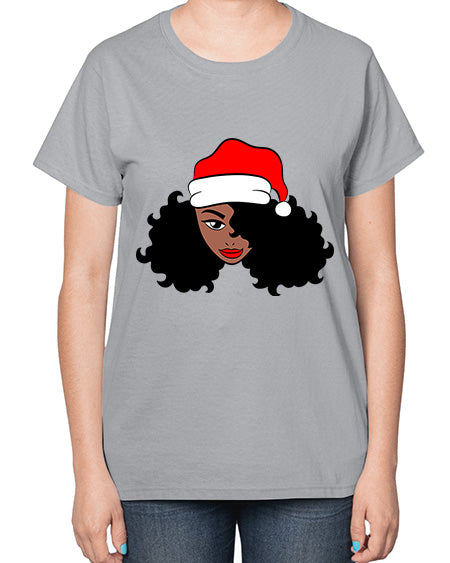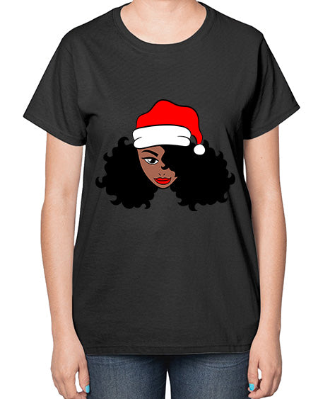 afro santa claus girl 71# - black girls or women- Ladies T-Shirt