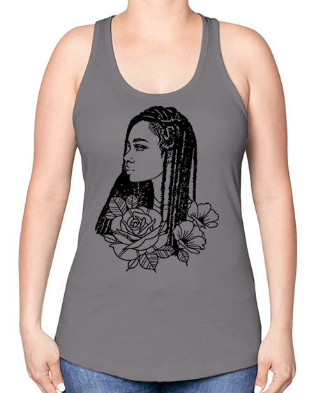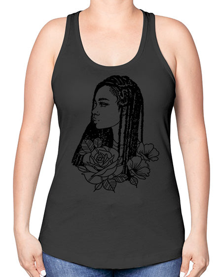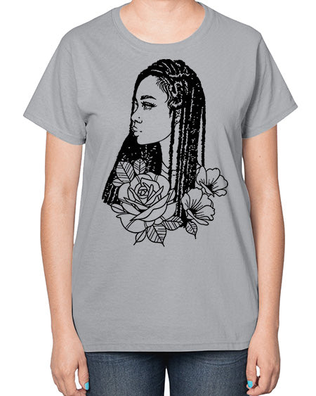 afro with flowers 70# - black girls or women- Ladies T-Shirt