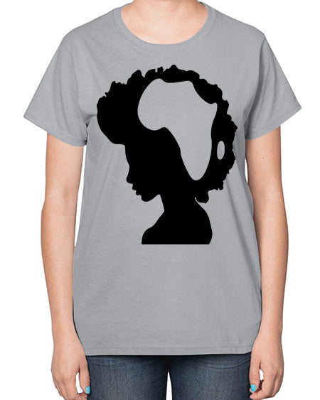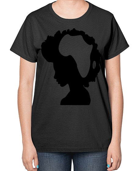 afro woman with africa map 65# - black girls or women- Ladies T-Shirt