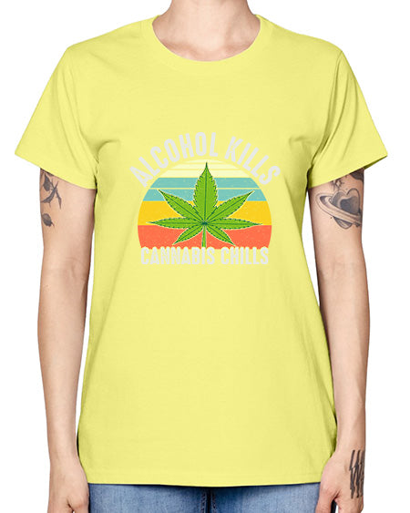 alcohol kills cannabis chills 221# - marijuana- Ladies T-Shirt