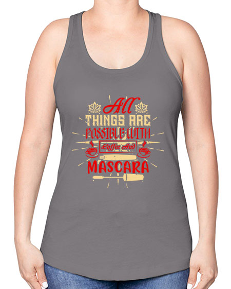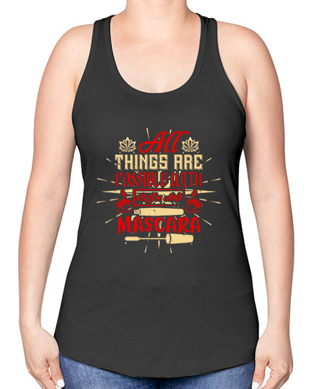 All things are possible with coffee and mascara Style 183# - beauty - fashion -Racerback Tank