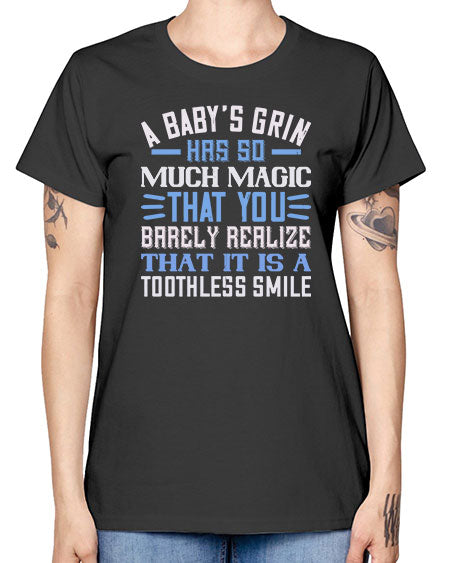 A baby’s grin has so much magic that you barely realize that it is a toothless smile Style 263# - baby- Ladies T-Shirt