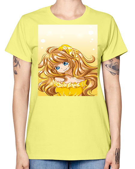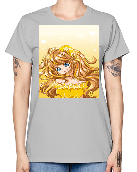 A beautiful and happy princess with gold dress game 131# - anime- Ladies T-Shirt
