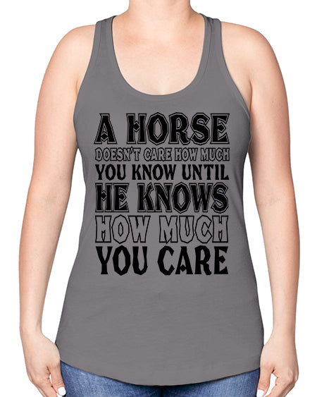 a horse doesnt care how much you know until - horse -Racerback Tank