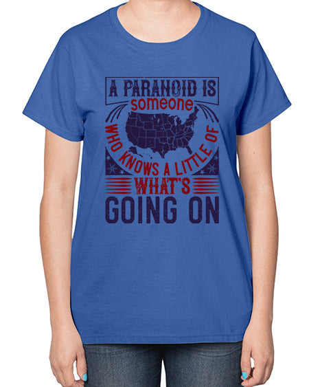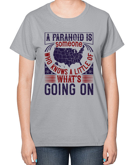 A paranoid is someone who knows 182# - graphic- Ladies T-Shirt