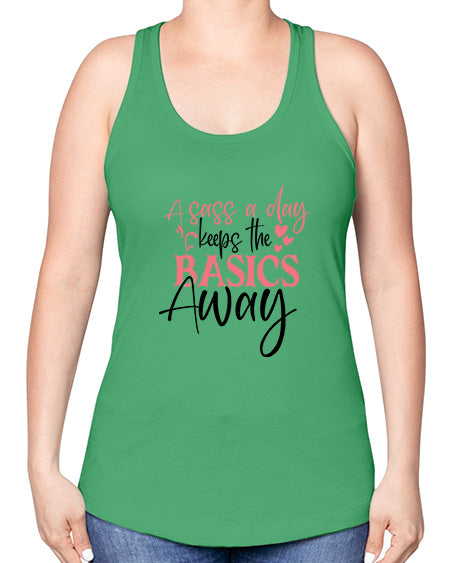 a sass a day keeps the basics away 185# - sassy -Racerback Tank