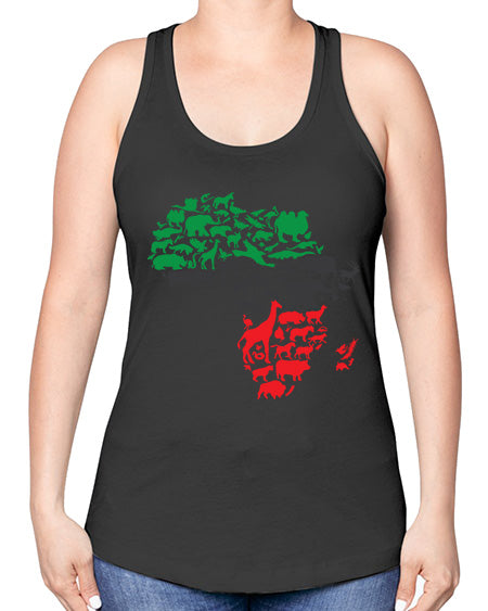 africa animals color 278# - black words and phrases -Racerback Tank