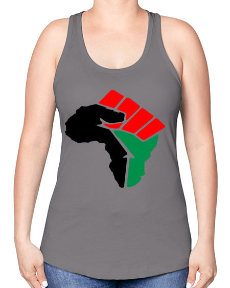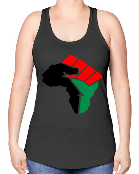 african power fist 274# - black words and phrases -Racerback Tank