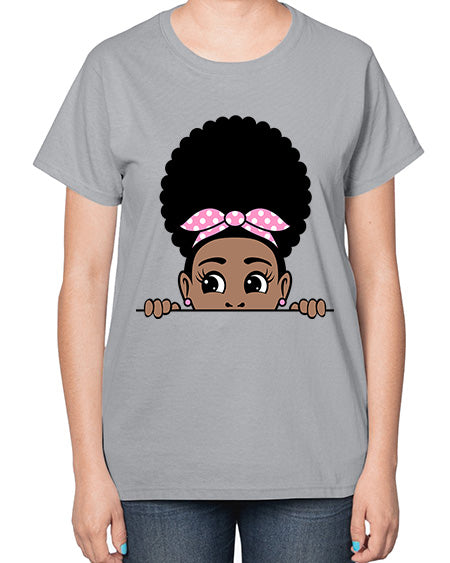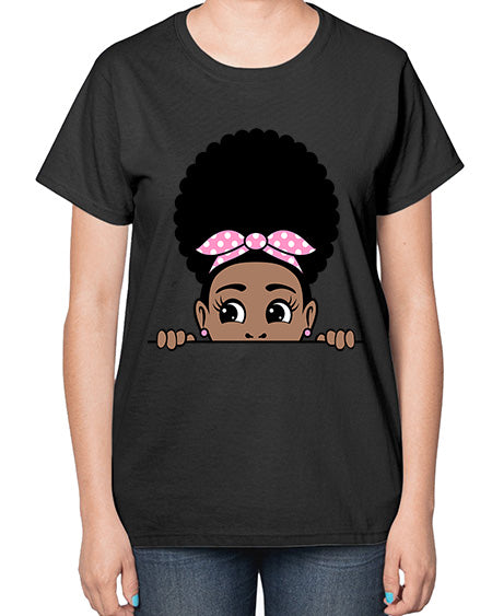 afro puff bandana girl peekaboo 85# - black girls or women- Ladies T-Shirt