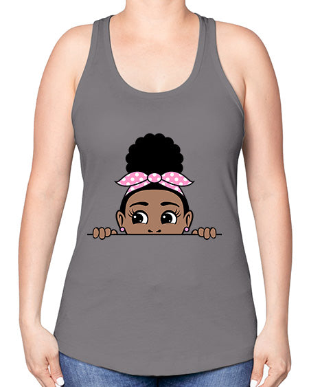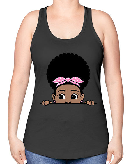 afro puff bandana girl peekaboo 85# - black girls or women -Racerback Tank