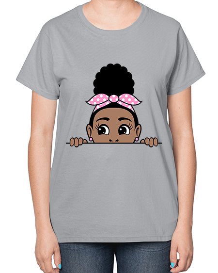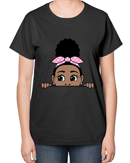 afro puff bandana girl peekaboo 86# - black girls or women- Ladies T-Shirt