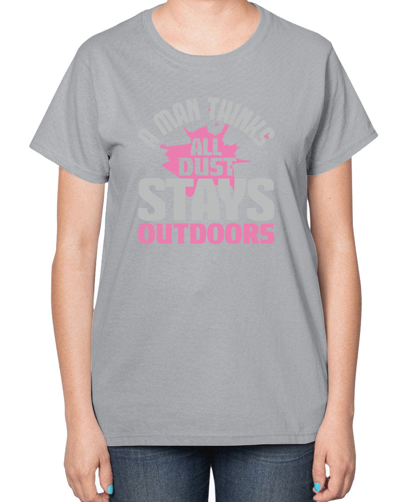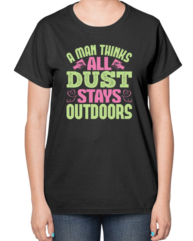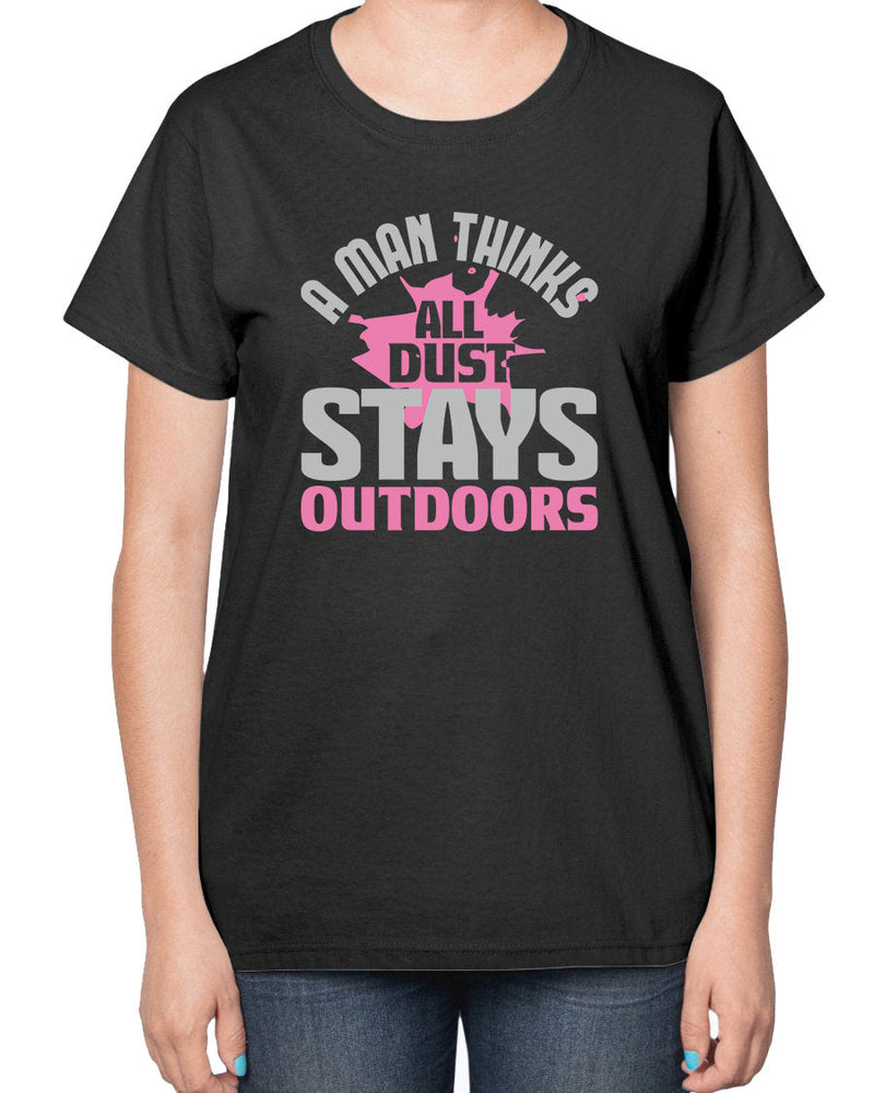 A man thinks all dust stays outdoors Style 13# - cleaner- Ladies T-Shirt