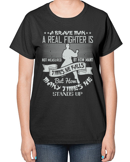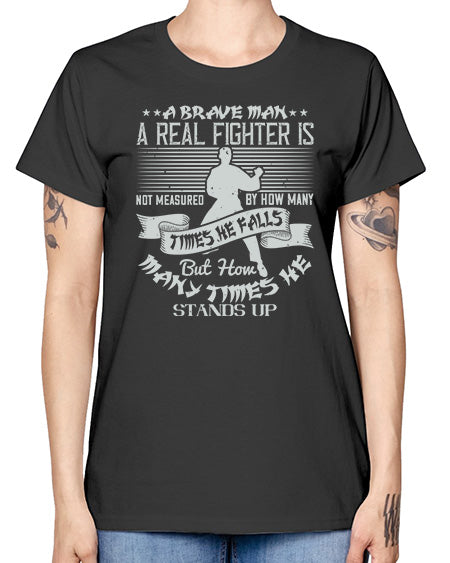 a brave man a real fighter is not measured by how many times he falls but how many times he stands up 94# - karate MMA- Ladies T-Shirt