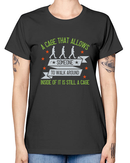 a cage that allows someone to walk around inside of it is still a cage 95# - walking- Ladies T-Shirt