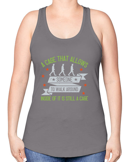 a cage that allows someone to walk around inside of it is still a cage 95# - walking -Racerback Tank