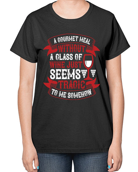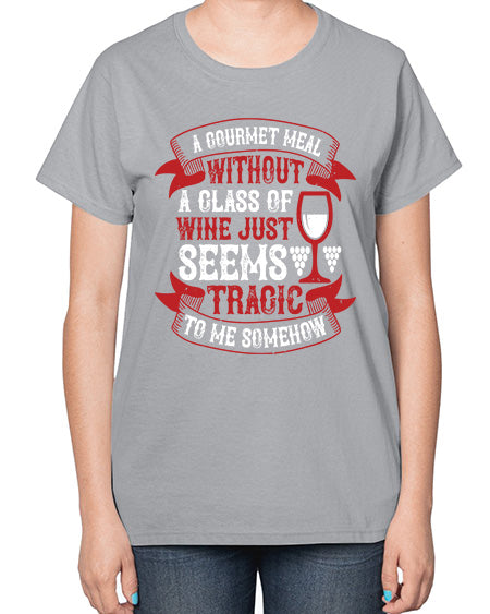 a gourmet meal without a glass of wine 526# - wine- Ladies T-Shirt