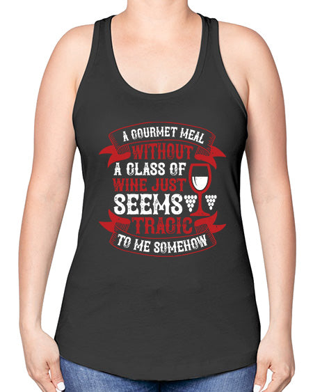 a gourmet meal without a glass of wine 526# - wine -Racerback Tank