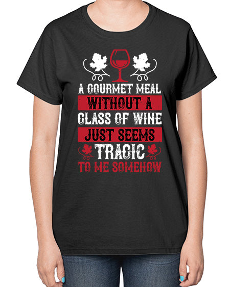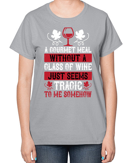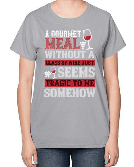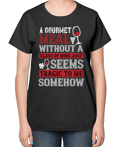 a gourmet meal without a glass of wine just seems tragic to me 528# - wine- Ladies T-Shirt