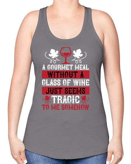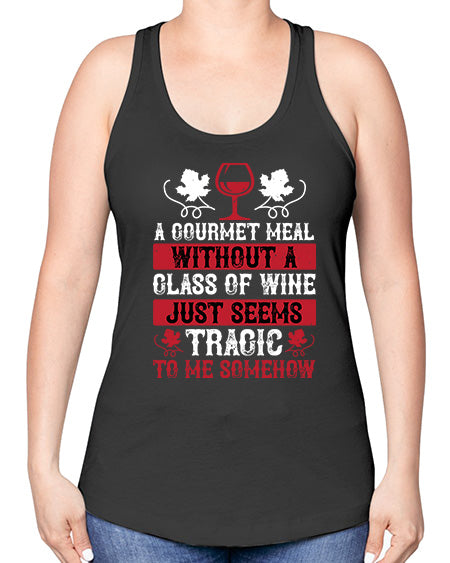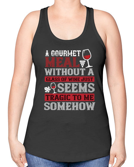 a gourmet meal without a glass of wine just seems tragic to me 528# - wine -Racerback Tank