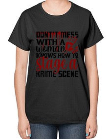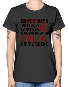 dont mess with a woman who knows how to stage a crime scene 386# - graphic- Ladies T-Shirt