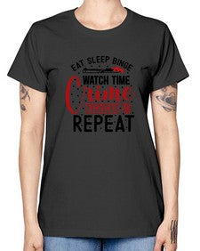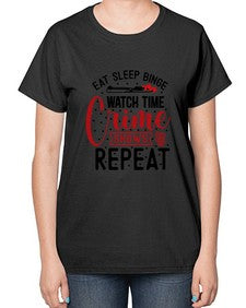 eat sleep binge watch time crime shows repeat 413# - true crime- Ladies T-Shirt