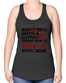 dont mess with a woman who knows how to stage a crime scene 386# - graphic -Racerback Tank