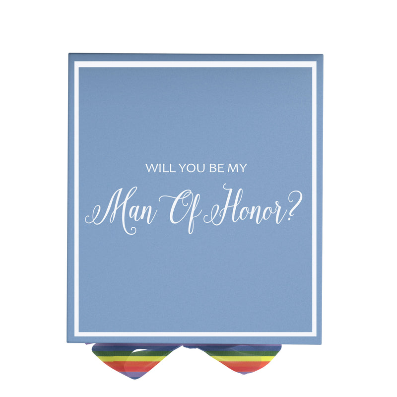 Will You Be My Man of Honor? Proposal Box light blue - Border - Rainbow Ribbon
