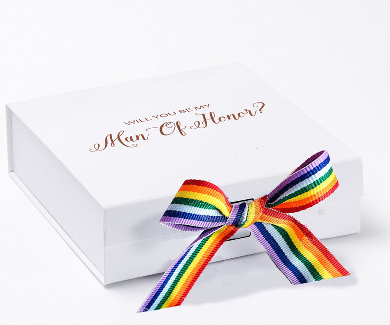 Will You Be My Man of Honor? Proposal Box White - No Border - Rainbow Ribbon