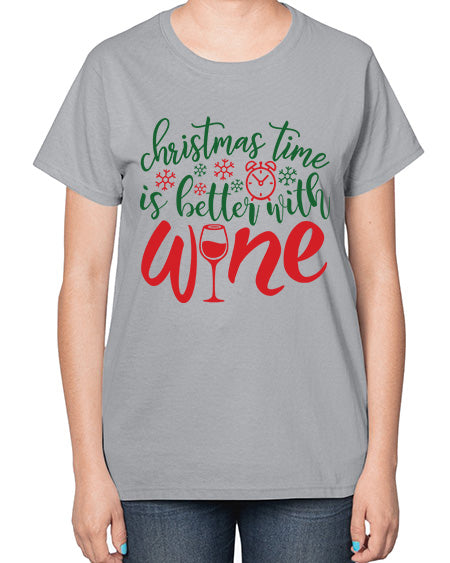 christmas time is better with wine 730# - wine- Ladies T-Shirt