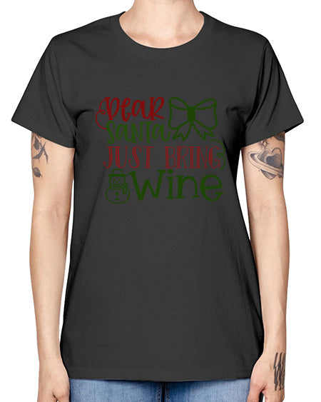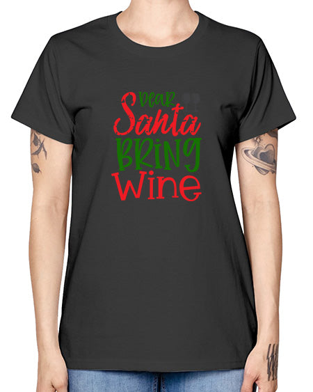 dear santa bring wine 898# - wine- Ladies T-Shirt