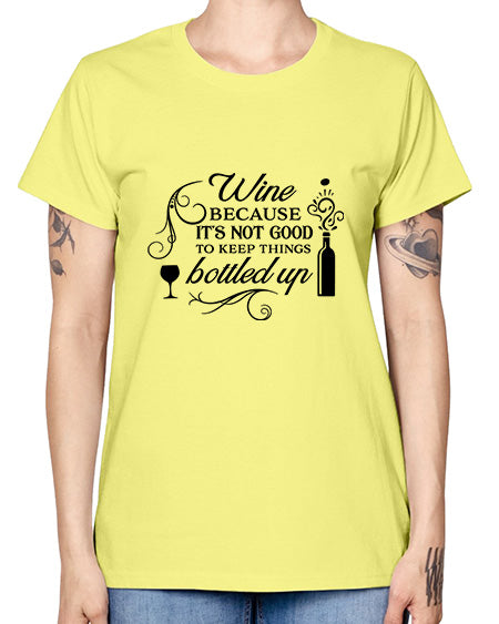wine because it s not good to keep things bottled up 1729# - wine- Ladies T-Shirt