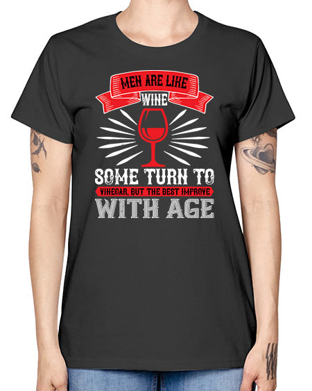 men are like wine some turn to 1389# - wine- Ladies T-Shirt