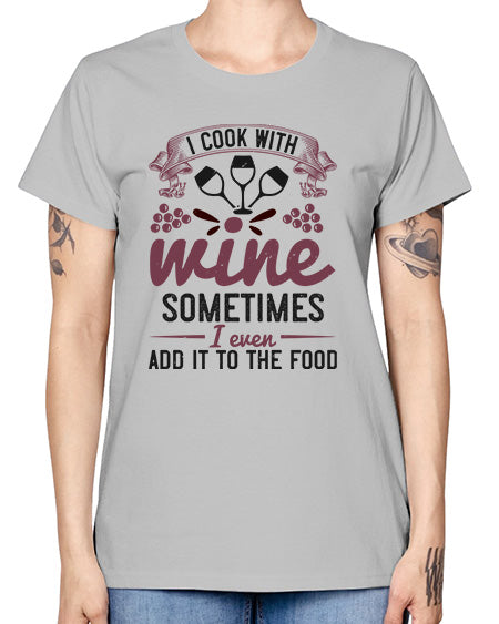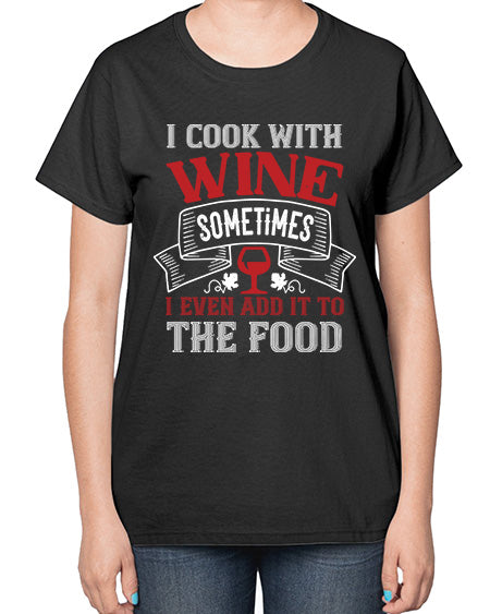 i cook with wine sometimes i even add it to the food 203# - wine- Ladies T-Shirt
