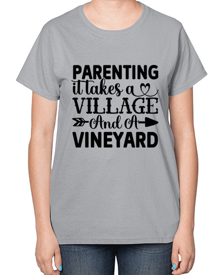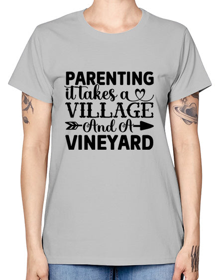 Parenting it takes a village and a vineyard 1471# - wine- Ladies T-Shirt