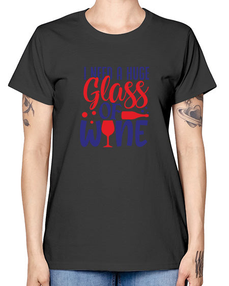 i need a huge glass of wine 1152# - wine- Ladies T-Shirt