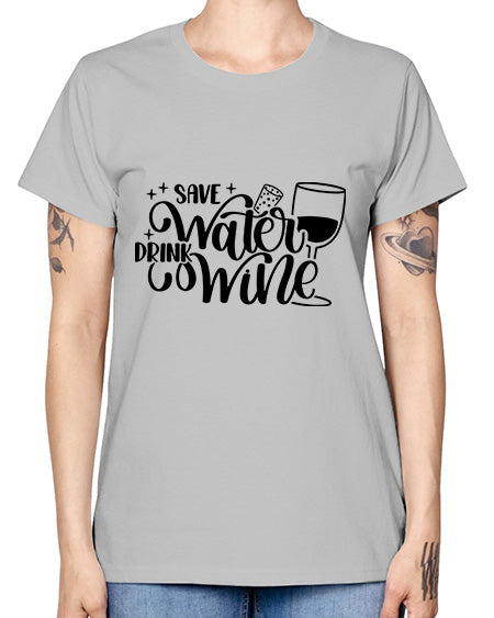 Save water drink wine 1518# - wine- Ladies T-Shirt