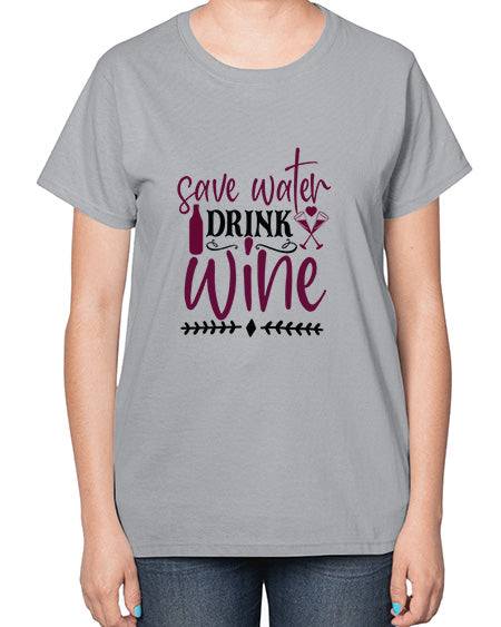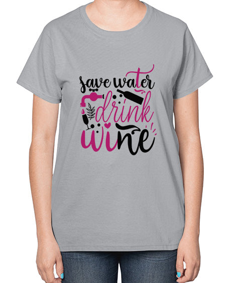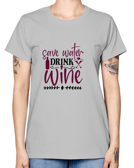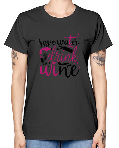 save water drink wine 380# - wine- Ladies T-Shirt