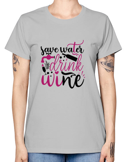 save water drink wine 382# - wine- Ladies T-Shirt